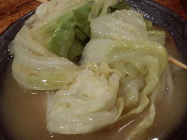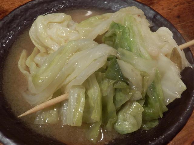 串煮込み2本、サシミ2本、串焼き盛り合わせ5本、キャベツ煮込み