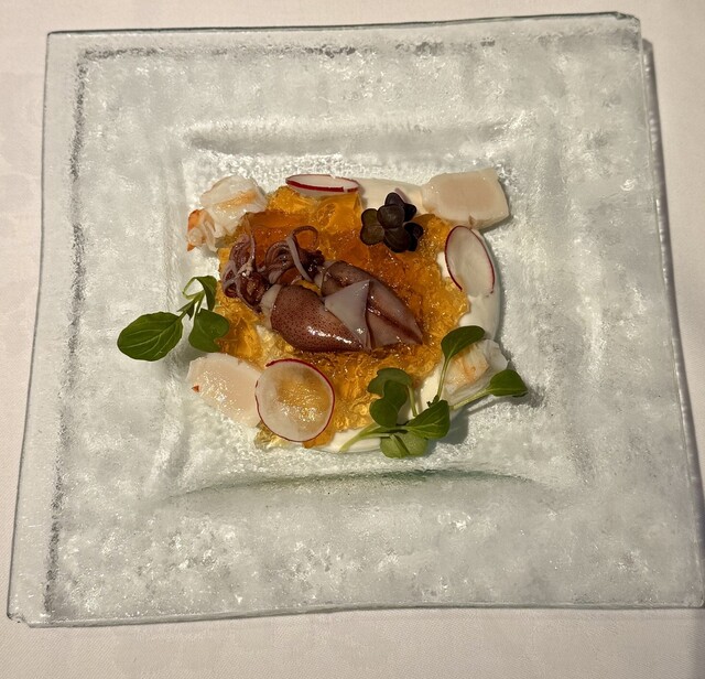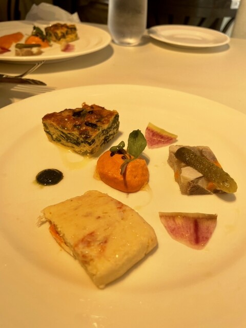 夜に利用 同ビル内のレストランとプティは利用したことあるがこちらは初。 開店当初はプティオザミとして営業してた2階部分をオザミ・デ・ヴァンとして営業してるよう。 コース構成とか営業形態自体はプティとそれほどは変わりない印象だがワインの方により力を入れる感じでしょうか。 頂いたのは冷前菜、温前菜、メインのプリフィクスコース。 内容は以下 ・牡蠣のポッシェ 凄いハデ。まさかこ... 詳細を見る