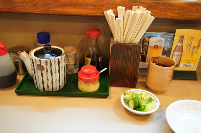 一人客は基本カウンターですが、上着・荷物用に隣席を開けてくれるので、ゆったり座れます。