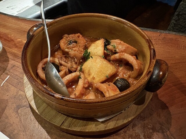 銀座駅徒歩すぐ、世界一の品揃えを誇るシェリー酒専門店。見た目も味も良いスペイン料理と多種多様なシェリー酒を頂ける、知る人ぞ知る名店。 【注文】 カジョス(ハチノス煮込み) 1540円 あんこうのアスピック 1320円 魚介のパエリア 3630円 トレーノ・デ・シエロ(卵黄のプ... 詳細を見る