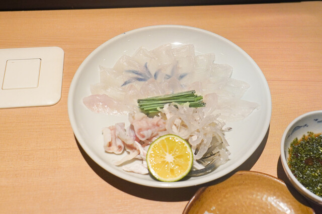 長年の研鑽によって培われた”ふぐ引き”によって一際輝く天然虎ふぐを、贅沢に味わい尽くす
