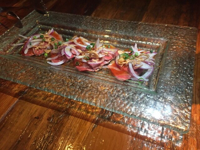 ちょっと銀座というよりは六本木によくありそうなインテリア。銀座で水槽というとこちらと水響亭がある。ちょっと時代遅れな古めかしいところもあるんだけどこういう店に来ると学生時代見ていた映画を思い出す。ジムジャームッシュのナイトオンザプラネットとか、いい映画だったな。