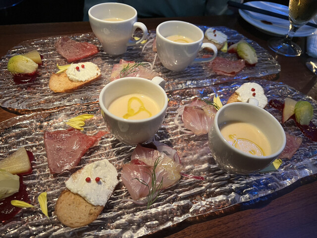 (ディナー)【席のみの場合】テーブルチャージ+チャーム料880円 サービス料なし 【コースの場合】テーブルチャージ+チャーム料はコース料金に含まれます。 |