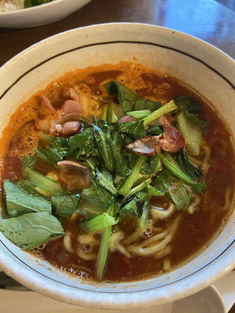 銀座に仕事で来た際にこちらでランチしました。 外観も内観も完全にカフェですがラーメンメニューが有り、美味しそうだったトマトラーメン ドリンク付き確か1200えんを発注しました... 詳細を見る