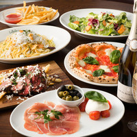 銀座みゆき通り、地下に広がる異空間。中央のオープンキッチンを囲むようにカウンターとテーブル席が配置された店内は、幅広い年齢層のお客様で活気にあふれています!店内は中世のヨーロッパを模したインテリアを再現していて写真映え抜群!種類豊富なワインにあうアペタイザーやサラダも充実。 オススメはカプレーゼやニョッキ!熱々焼き立てのピッツアも人気。デザートには人気のティラミスやアップルパイをぜひ◎