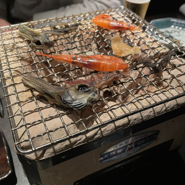 コースを頼みましたが、初めに来た「七輪で炙る酒肴盛り合せ」は、これは美味しかった!最初っから...