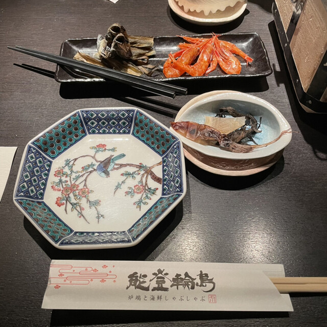 石川各地の郷土料理や珍味を盛り込んだ前菜から始まり、七尾直送鮮魚のお造り、のどぐろや能登牛の炭火焼、産直季節野菜の天麩羅に続き、当店自慢の「寒ぶりとズワイガニのしゃぶしゃぶ」も堪能できる能登輪島を丸ごと味わえる極上コースに仕上がっております。石川の地酒と共にお楽しみください。 ※写真はイメージです。