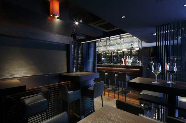黒を基調とし控え目な照明の薄暗い雰囲気です。