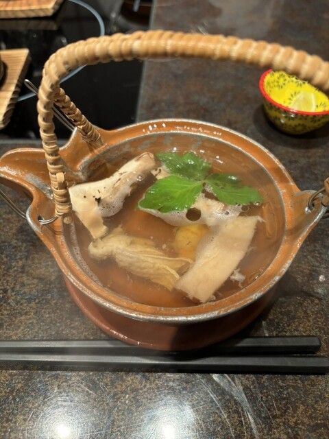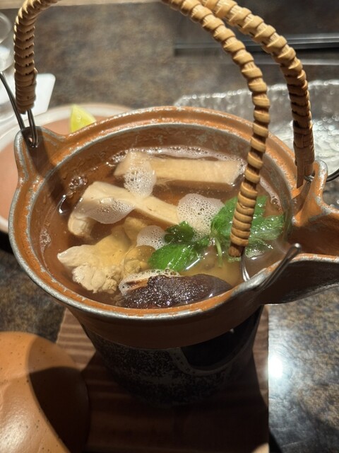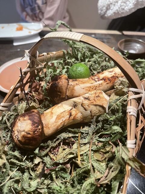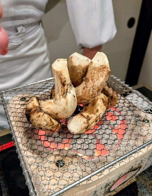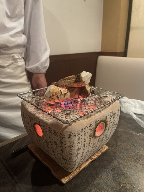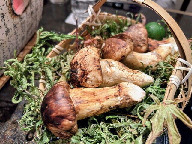 この日は松茸の一本焼きが楽しめるコースを注文。昨年から秋の定番行事のように、この時期になると松茸を求めて舞桜を訪れるようになった。やはりこの店の松茸は格別だ。籠に盛られた立派な松茸を炭火でじっくり焼き...