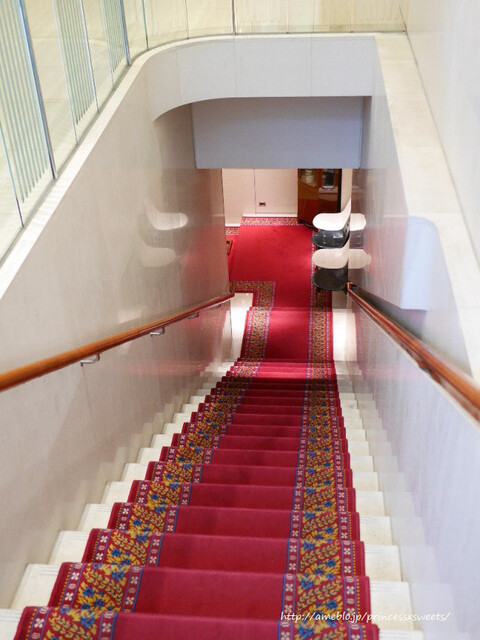 絨毯が敷かれた階段を降りた地下がロイヤルクリスタルカフェ。