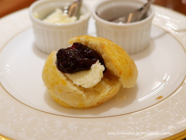 スコーンにはクロテッドクリームとブルーベリージャム添え。