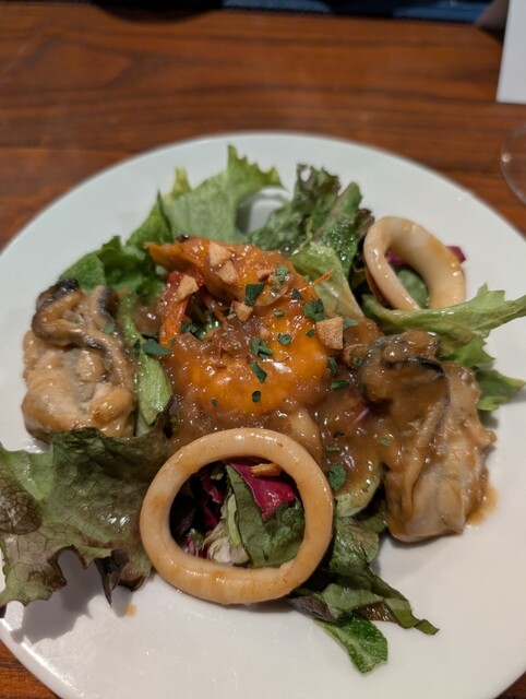 平日夜に4名で予約入店し、アラカルトで注文。 生ビール、白ワインで楽しみました。 生牡蠣5種食べ比べは三重、福岡、大分の牡蠣。 旬の時期ではないと思いますが、どれもプリプリで濃厚、美味しかったです。 他の料理も海鮮系がふんだんに使われていて、どれも美味。 一品のボリュームは多くないですが、いろいろ味わえるのが逆に良いですね。 店内はおしゃれで落ち着いた雰囲気なので個人的にはお気に入... 詳細を見る
