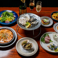 濃厚クリーミーな生牡蠣から、焼き牡蠣・ポテトフライ・牡蠣のペペロンチーノまで、牡蠣好きにはたまらない贅沢コース。鮮魚のカルパッチョやとろ〜りグラタンパイなど、前菜も充実。スパークリングワインで乾杯しながら、パーティー・忘年会や接待にぴったりのひとときをお楽しみください。