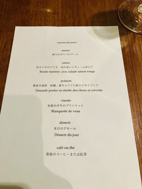 東銀座・歌舞伎座の裏手にひっそりと佇む4年連続ビブグルマン獲得の正統派ビストロ。今回は接待で利用。前菜から始まりメインの鹿肉までかなり食べ応えあり、コスパの高さは嬉しい限り。好みを言えば美味しいワイン...