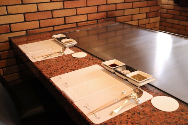 鉄板テーブルのある個室に通さ...