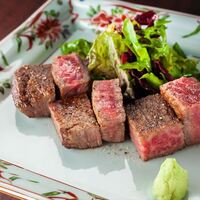 お肉づくしのステーキコース、 自家製のコンビーフに始まり、肉前菜、ステーキ、ハンバーグ、ビーフカレーとたっぷり山形牛を堪能していただけます。コース最大の特徴はA5 雌牛の山形牛ステーキ3種類の部位を盛り合わせにして食べ比べをしながらお召し上がりいただけます。香り高く肉本来の旨味に溢れたサーロインはとろけるほど柔らかいです!加藤牛肉店が提供する山形牛を存分に堪能してください。