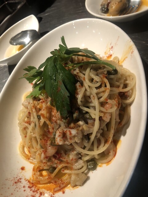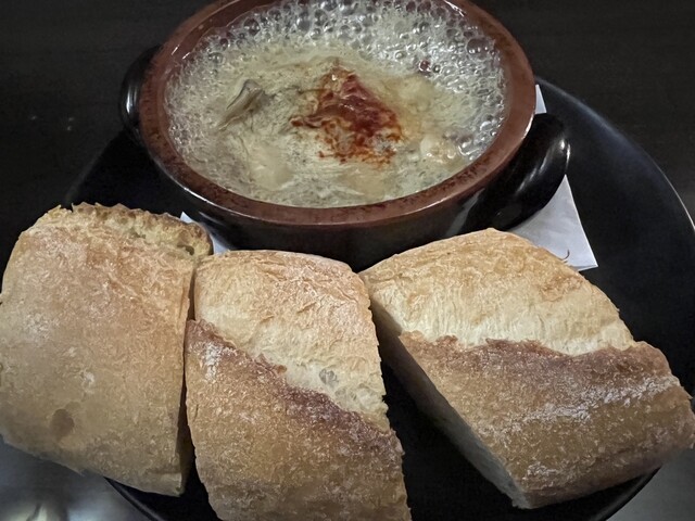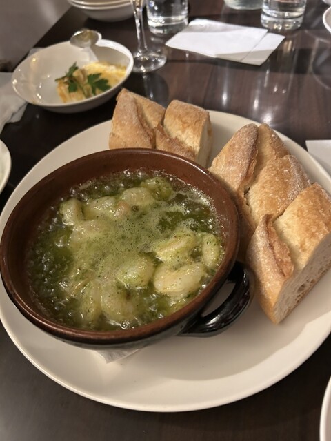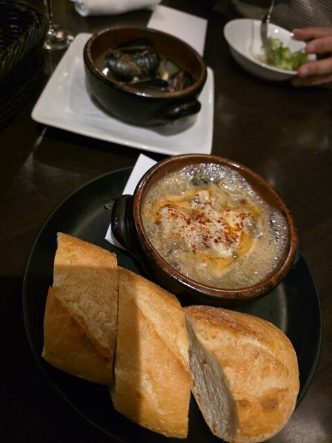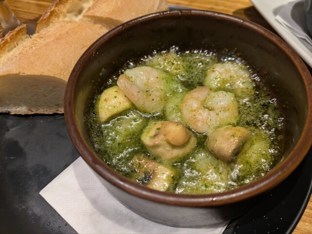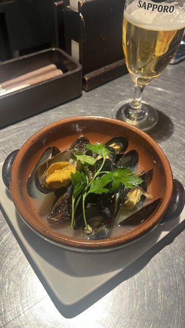 食事も美味しく、特に牡蠣のアヒージョとムール貝、豚肉のグリルが好評でした。
