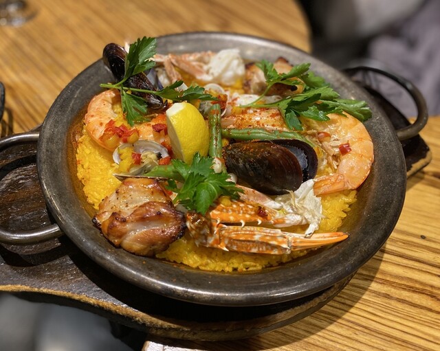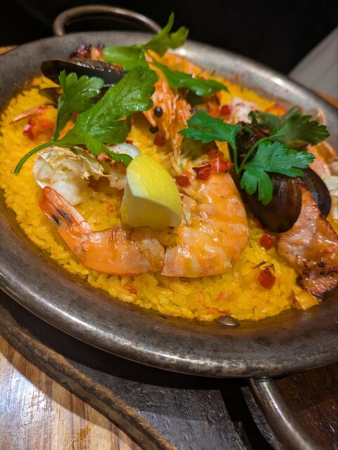 日曜ディナー。今日は歌舞伎鑑賞をした後に入れるお店を探し、こちらを初訪問。21時過ぎでしたがまだまだ賑わっており、なんとかすぐに座れました。こちらのお店はスペイン料理のお店で、お目当てはパエリア。それ...