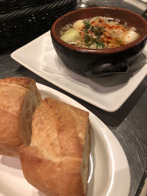 牡蠣と葱のアヒージョですが、これはバゲットが止められない♥️