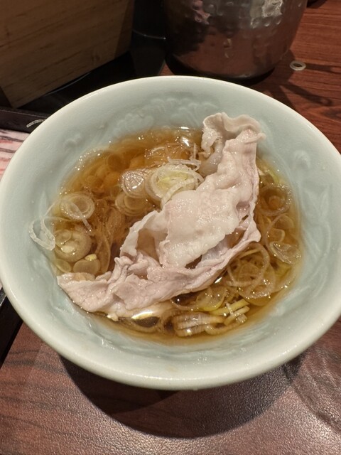 とろける食感の甘く柔らかい豚肉を奥深い自慢の「出汁」にたっぷりつけてたっぷりの刻み葱と一緒にお召し上がりくださいませ。