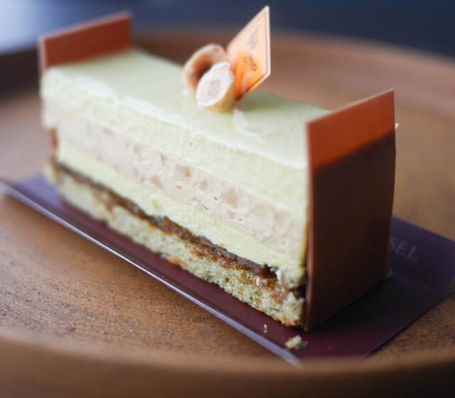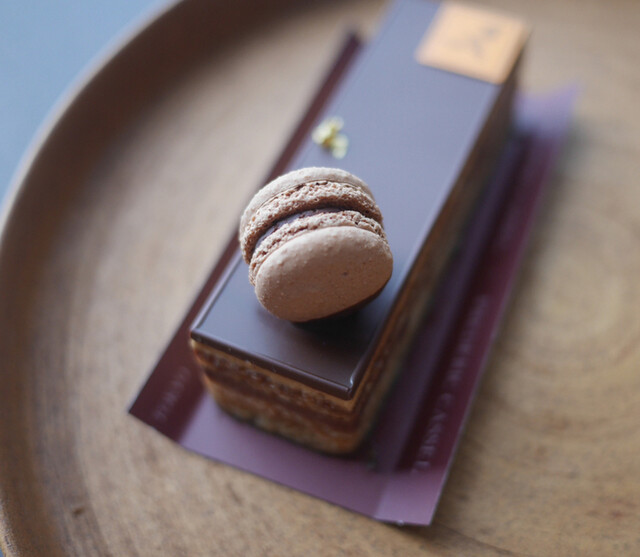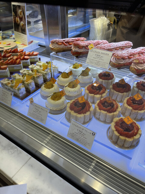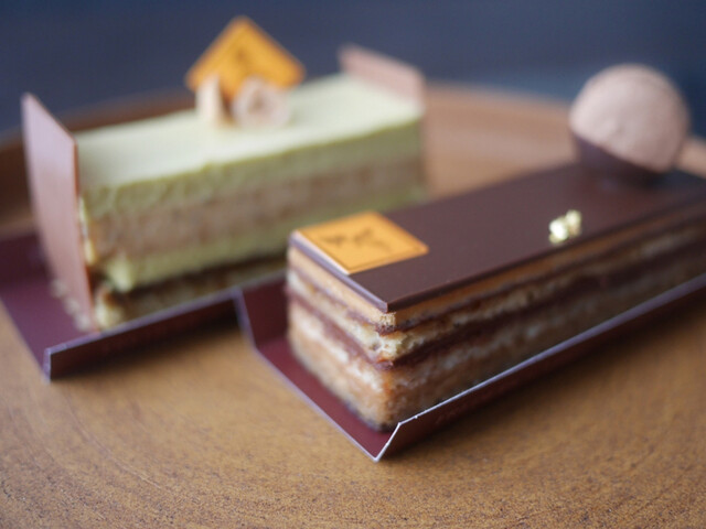 夕方前に訪れると、ミルフィーユ・ヴァニーユやエクレールが美しく並び、どれも誘惑的。その中から選んだのは「タングラム」と「エクレール・ヴァニーユ・ペカン」。どちらも見た目の完成度が高く、手に取った瞬間から特別感が...