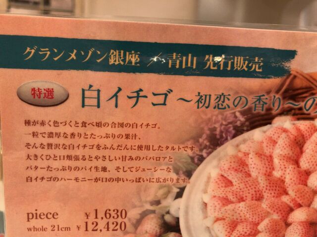 特選 白イチゴ〜初恋の香り〜のタルトは、12月7日から銀座・青山店で先行発売だそうです。