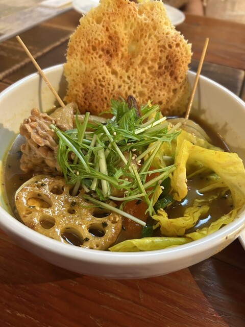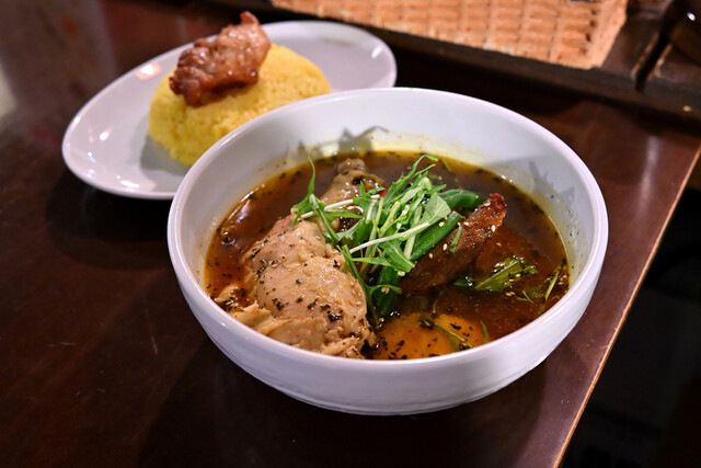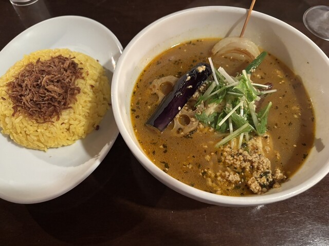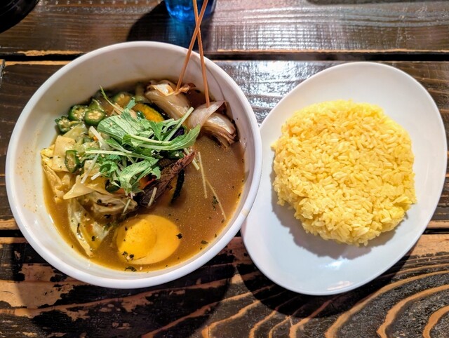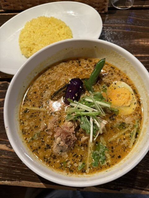 平日の18時過ぎに来店。 店内はすでに多くのお客さんで賑わっており、ラスト1席にギリギリ滑り込むことができました。人気店らしい活気があります。 このお店の魅力は、スープの種類、辛さ、ライスの量を自由に選べるところ。 今回は「チキンスープカレー(骨付き)」を黄色いスープで注文(1,450円)... 詳細を見る
