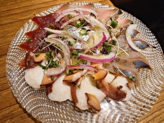 お久しぶりの訪問だったので再UP (過去ログ参照下さい) 土曜日18:30頃、予約をして訪問。 コロナ禍前の賑わいを取り戻した様で ほぼ満席の店内、 週末ゴールデンタイムは予約必須です orderした物↓ ●海の幸のカルパッチョ(M) @1,410円 ●季節のポテトサラダ @480円 ○生ビール @690円 ×... 詳細を見る