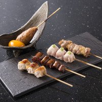 1本1本手打ちし備長炭で焼き上げた秋田比内地鶏焼鳥メインのまかせ串コースに、国産黒毛和牛を一本追加の年末限定コース。