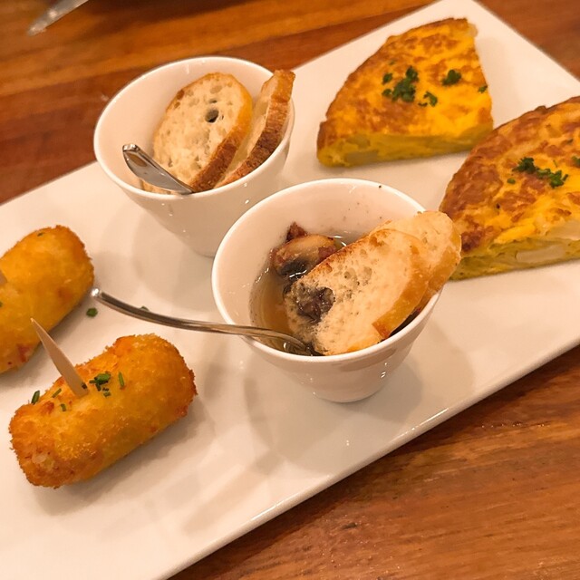 銀座にある「Pais Vasco」に初訪問。落ち着いた雰囲気の中で、バスク地方の料理をゆっくり楽しめる素敵なお店でした。店内はやや暗めの照明で、大人な空間。1階〜3階まであり、デートやちょっと特別な食事にもぴったりだと思います この日は、 ・海のアロス ・イカ墨のアロス ・生ハム ・薄切りのバゲットに海老のクリームをのせていただく前菜(名前忘れましたが絶品) ・クレソンのサラダ ... 詳細を見る