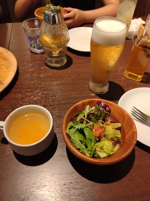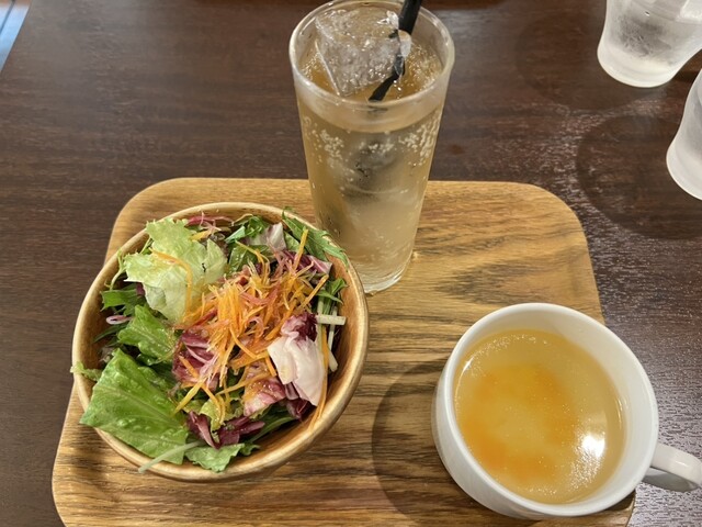 サラダもスープもありがちなランチセットって感じですね。ドリンクは意外にもしっかり大きなグラ...