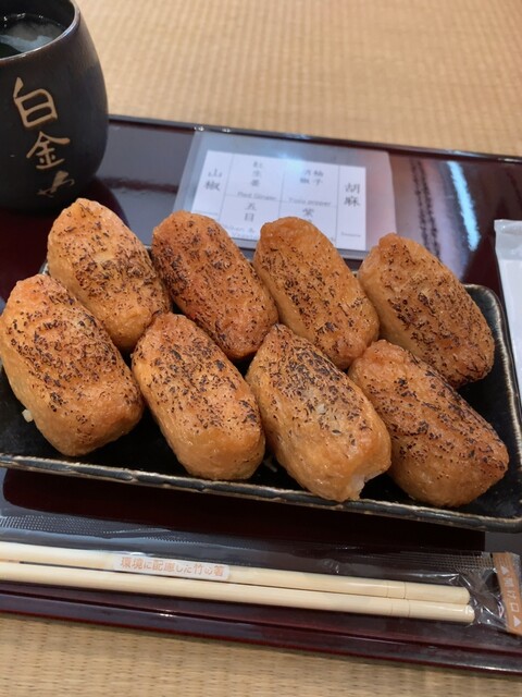 銀座白金やさんは、2013年に和食の食事処&土産物店としてオープン。食事処のイートイン・テイクアウトのメニューの一つだったいなり寿司が評判になり、それだけを買いに来る客が増えたため、現在はいなり寿司専門店として営業しています。
