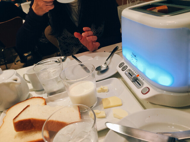 トースターを選んで席でパンを焼いていただきます。楽しいですね~