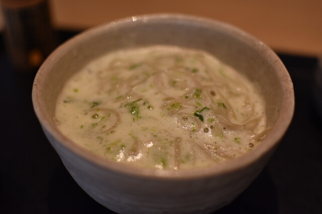 磯雪、10年ぶりに食べたが、抜群に美味。 泡立てた卵と生海苔を絡める蕎麦になるが、ふわトロで素敵な食感が素晴らしい。 夜はコース予約がメイン。そば3種に天ぷらや刺身がつくコースを注文。磯雪は、〆の蕎麦を+300円で変更可。 このコース、そば3種の美味しさに加え、特上焼き海苔が良いアクセ... 詳細を見る