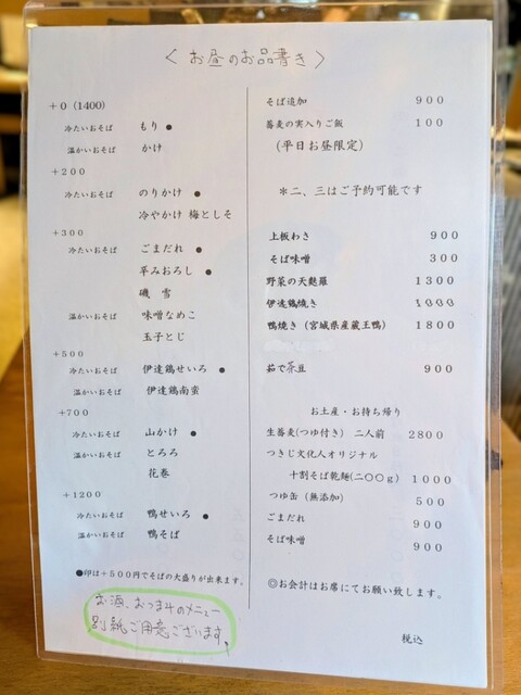 蕎麦会席 つきじ文化人 凬