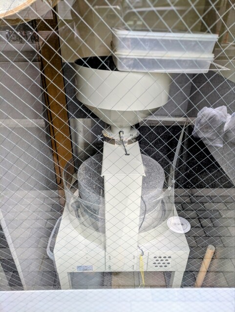 店内の石臼にて蕎麦の実を碾く