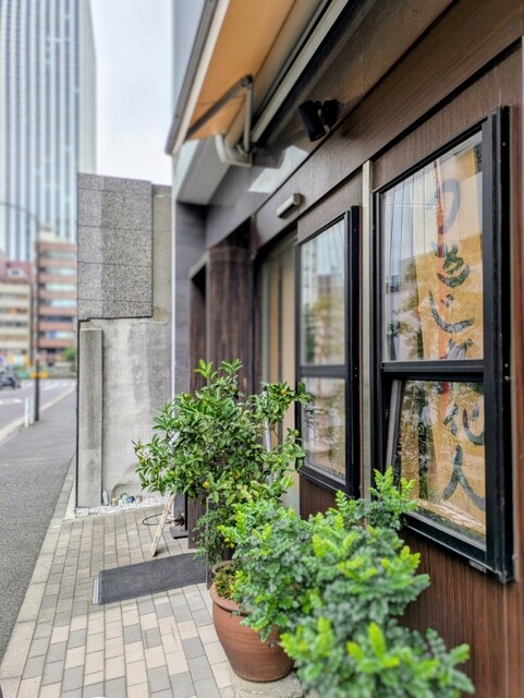 植栽を配し風情ある店構えであり