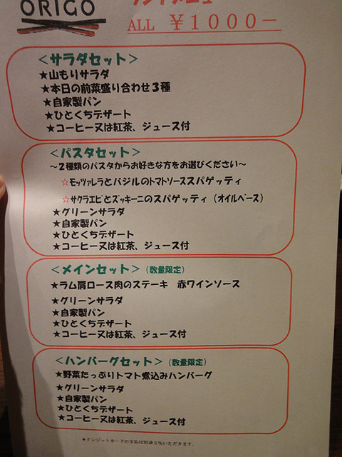ランチメニューは、全品1000円