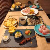 ランチはボリュームたっぷりのお蕎麦を。ディナーはお酒とおつまみと。