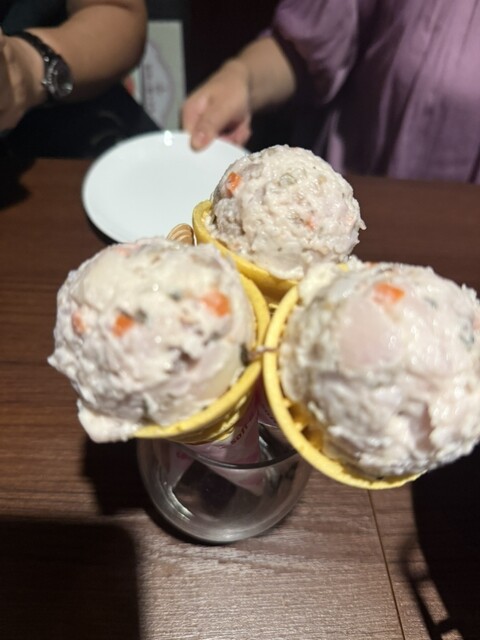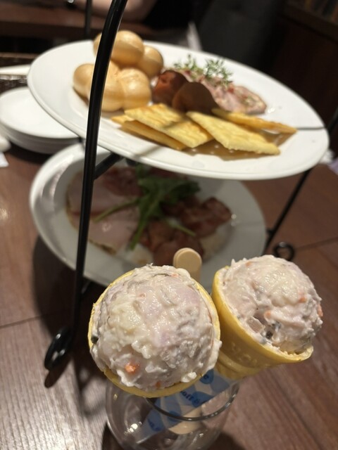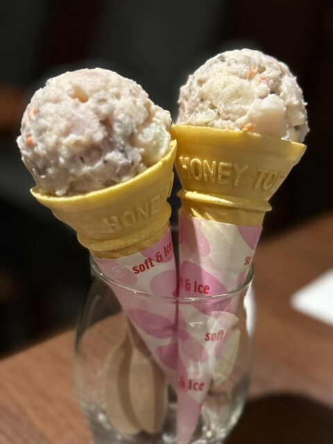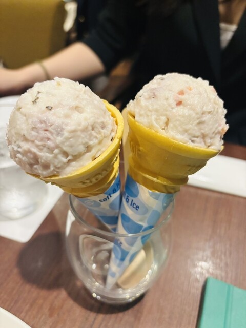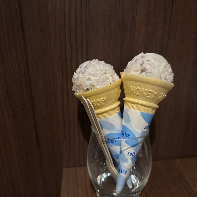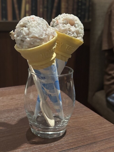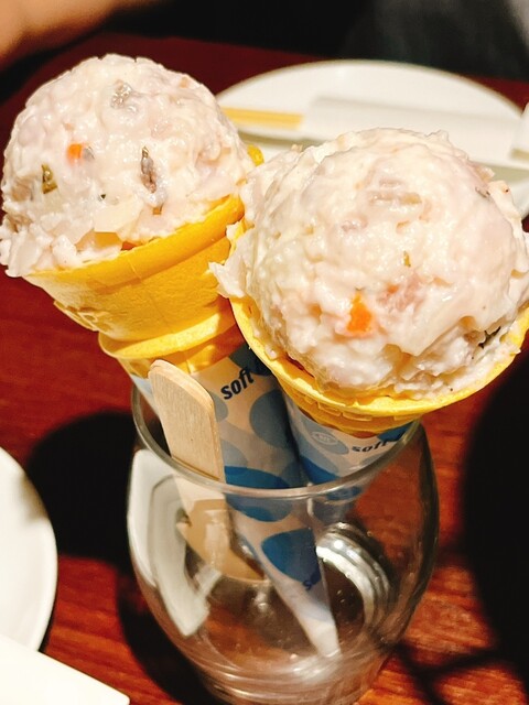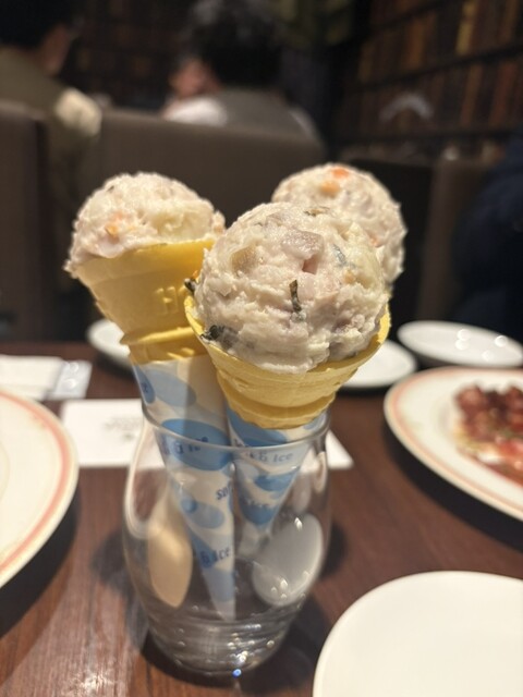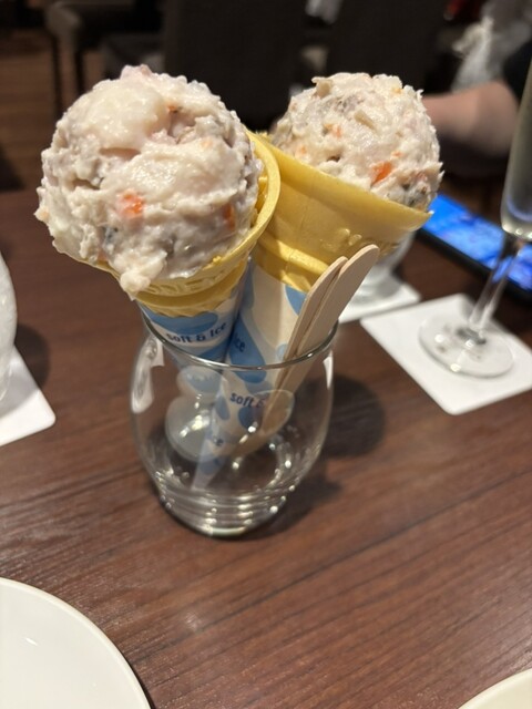 お通しの梅ポテサラアイスクリームコーンに乗っていて可愛かったです!