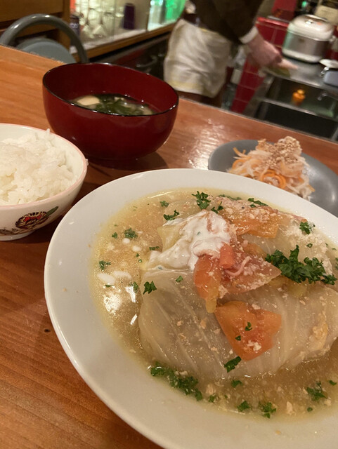 【化学調味料は一切使いません】ロールキャベツとポークソテー2品だけの食堂。11時半〜19時