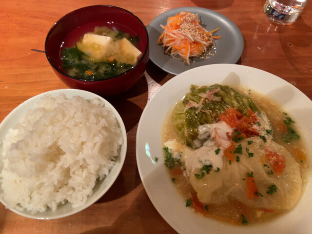 銀座で22年続くバーの手作りランチ。化学調味料は一切使いません。バターも油も使わず、半日かけてコトコト煮込むブイヨンは 鶏がら、牛赤身、玉ネギ、ニンジン、セロリ、パセリ、長ネギなどのうまみがぎゅっと凝縮。 カラダがよろこぶ、滋味豊かな味わいです。 甘いキャベツでふんわりと挽肉を包んだ「ロールキャベツ」と、 肉厚なのに柔らか「ポークソテー」2品だけの昼食堂です。煮干しと昆布で出汁をとった味噌汁と、ご...飯は大盛りサービス◎ 11時半〜19時/20時からはバー営業となります。