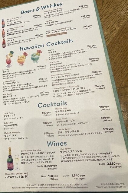 | ドリンク | ワインあり、カクテルあり |