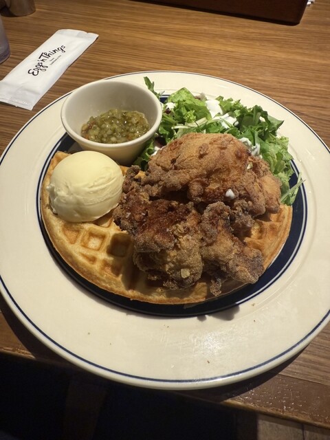 オーダーはパンケーキではなくワッフルチキンを。卓...