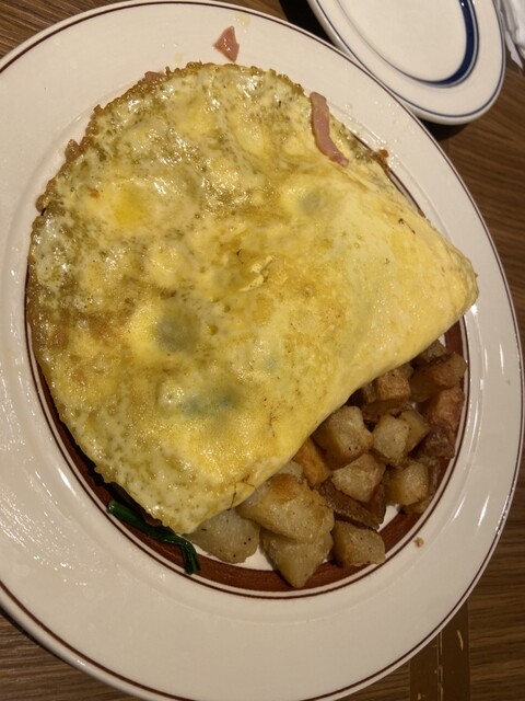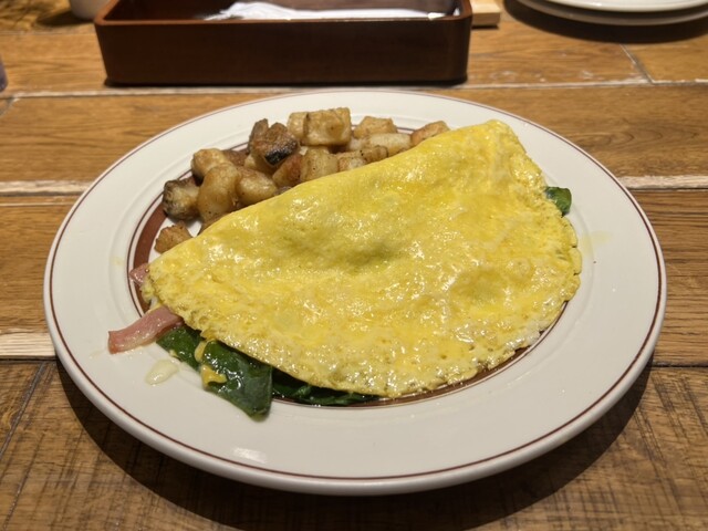 オムレツ ほうれん草、ベーコン、チーズにポテト追加
