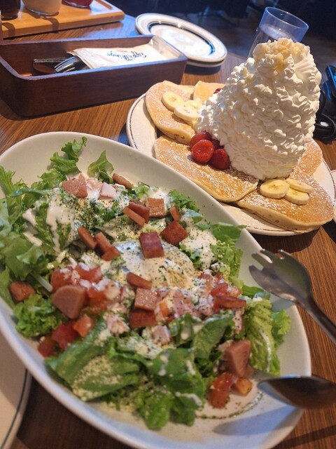 クリームたっぷりパンケーキ、たまに無性に食べたくなる!しょっぱい系とセットで(笑)こちらにきたら、ハワイコナ珈琲も是非飲んで欲しい。パンケー...