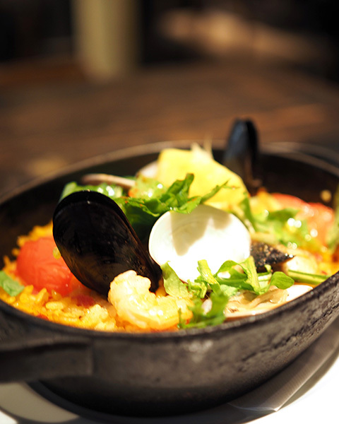 こちらでは一人前を注文が入ってから炊き上げてくれるとのことでありますし、その器は一般的なパエリアパンではなく、南部鉄器で作られる厚手のココット鍋で炊き上げられていたのであります