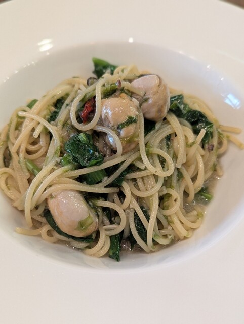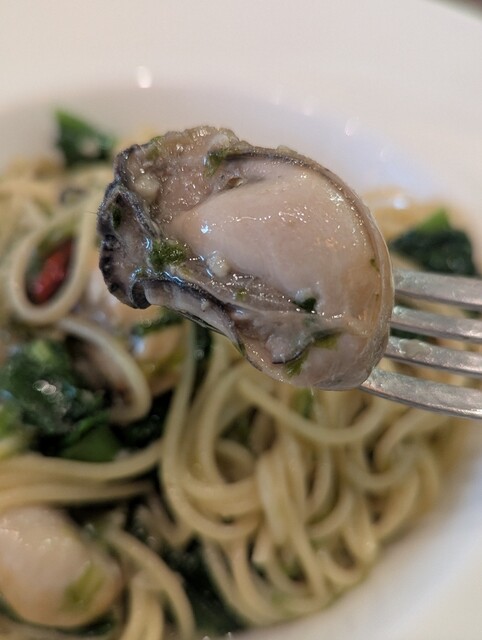 パスタも小ぶりながらもぷくぷくのまるっとした牡蠣が3粒。お味もしっかり目で美味しくいただきました♪♪