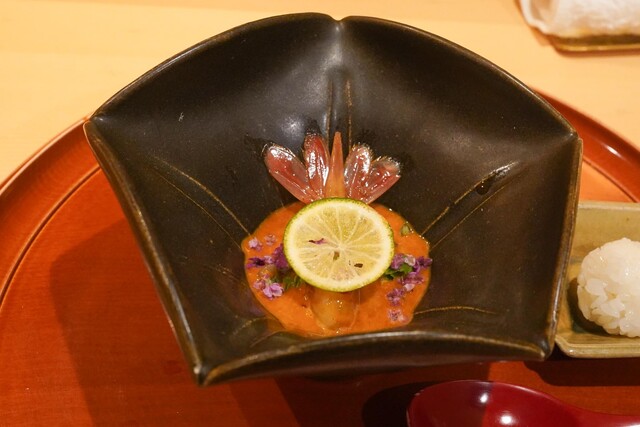 前回は私の誕生日に伺いましたが 今回は篠原大将のお誕生日に訪問です 歳は楽しくとるのが最高です╰(*´︶`*)╯♡ お誕生日おめでとうございます㊗️ 本当はライティングが落ちた時に ハッピーバースデーを歌いたかった 最初に先ずは玉露から 甘く爽やかな京都の玉露が 食事の前の舌を整... 詳細を見る