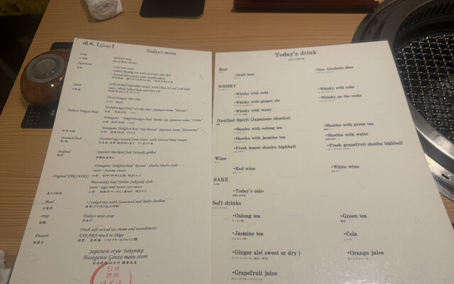 | ジャンル | 焼肉、ホルモン、日本料理 |